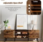 Förvaring och kabelhål: Den justerbara hyllan i mitten kan ställas in i tre höjdnivåer, och två stora skåp döljer enkelt prylar och småsaker. Dessutom finns fyra kabelhål på baksidan för att hålla ordning på sladdarna. Visa upp eller göm undan? Denna TV-bänk i midcentury-stil gör båda delarna snyggt.