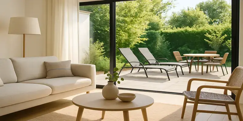 5-delars utomhusmöbelset i konstrotting – vädertåligt bistroset med fotstöd, kompakt loungeset