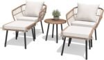 5-delars utomhusmöbelset i konstrotting – vädertåligt bistroset med fotstöd, kompakt loungeset